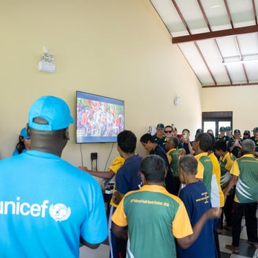 UNICEF facilitated a Cricket4Good session where the visiting Australian Women’s Cricket Team for the Blind interacted with children and young people with special needs. His Excellency Matthew Duckworth, the Australian High Commissioner, also joined the event.